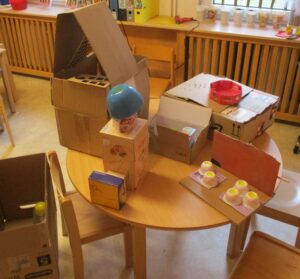 Im März startete Papilio bei uns mit dem „Spielzeug-macht-Ferien-Tag“. Unser Teddy hielt einen Brief in den Armen und ein großer Koffer stand mitten im Gruppenraum. Jedes Kind der Gruppe suchte im Raum ein Spielzeug und legte es in die Kreismitte. Danach wurde der Koffer geöffnet und die Kinder entdeckten viele Alltagsmaterialien, mit denen sie spielen konnten. Von nun an spielten die Kinder jeden Freitag mit verschiedenen Dingen, z.B. Töpfe, Bleche, Dosen und vieles mehr.
