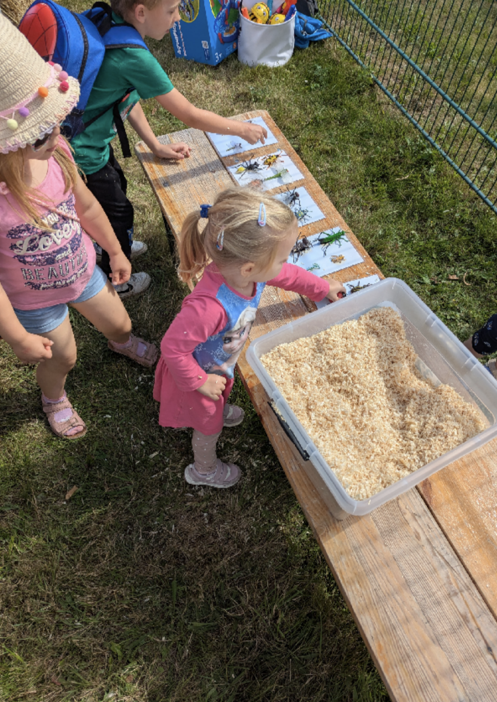 Ganz im Zeichen unseres diesjährigen Hausprojektes fand am 19.06.2025 unser alljährliches, beliebtes Sommerfest statt. Dieses Mal meinte es der liebe Wettergott besonders gut mit uns und unseren zahlreichen Gästen – die Sonne strahlte vom wolkenlosen Himmel auf uns herab. Nach einem gemeinsamen Begrüßungsprogramm aller Gruppen konnte fleißig gebastelt, geforscht und experimentiert werden. Alles stand im Zeichen der Insekten. So gab es zum Beispiel einen Bee-Bot Stand, einen Insekten-Lotto-Stand, man konnte sich einen schmackhaften Käfer zurechtzaubern oder auch magische Wasserraupen zum Leben erwecken. Natürlich war auch für das leibliche Wohl unserer Gäste gesorgt. Ein besonderes Highlight war in diesem Jahr unsere Slush-Eismaschine – die war der absolute Renner!