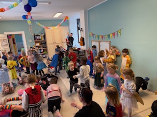 Ob basteln, Spiele spielen (z.B. Tauziehen, Eierlauf), Tattoos kleben oder beim gemeinsamen Singen von Faschingsliedern – die Begeisterung war riesig! Ein besonderes Highlight war die fröhliche Faschingsparty mit bunten Discolichtern und Luftballons. Wir möchten uns bei allen Eltern und dem Hochschulkrug bedanken, die mit ihren tollen Ideen und der tatkräftigen Unterstützung dazu beigetragen haben, dass unser Faschingsfest ein voller Erfolg wurde.