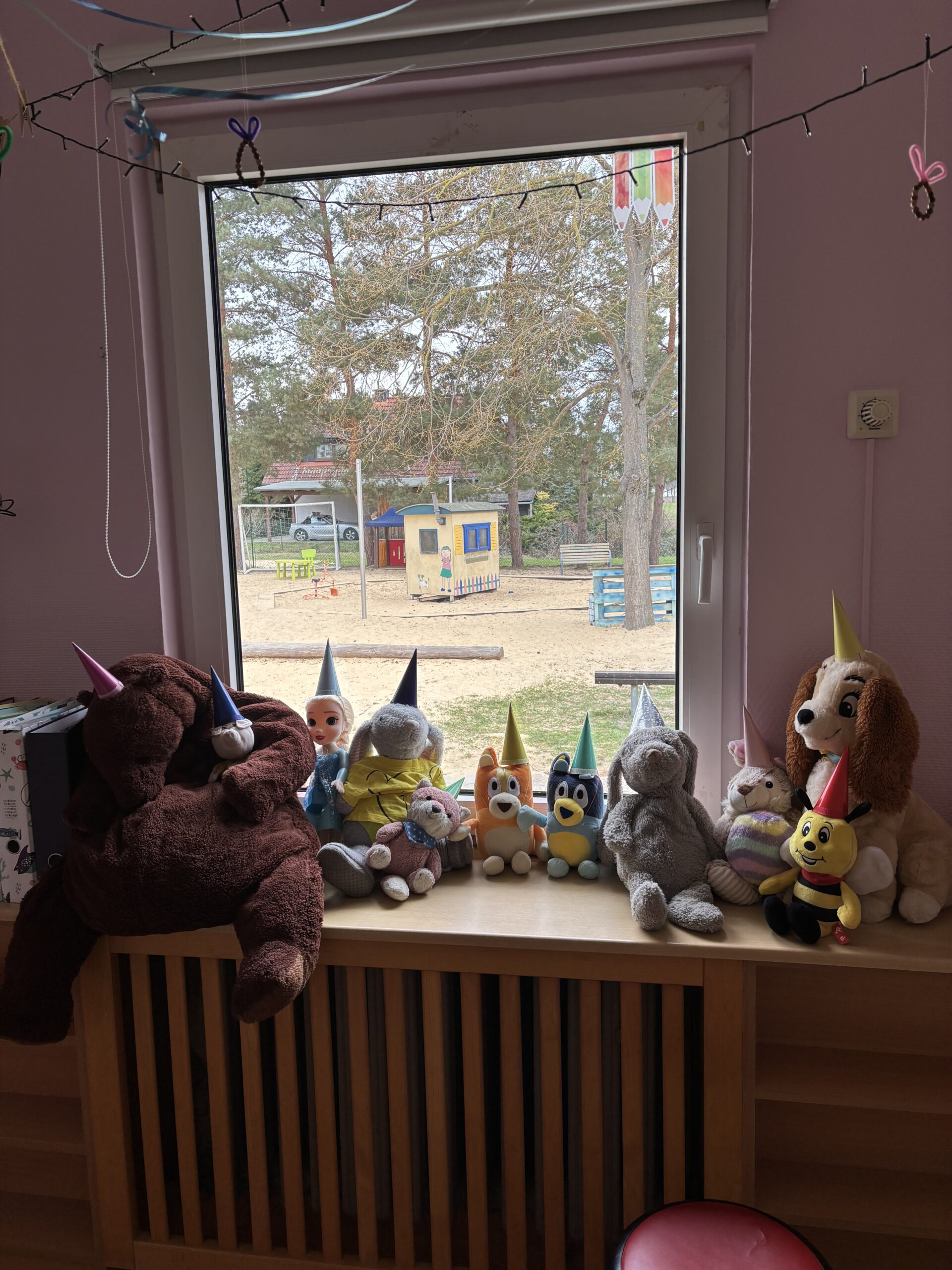 „Der Osterhase war bereit, für Spiel und Spaß in bunter Zeit. Wir suchten Hasen, groß und klein, auch bunte Eier durftens sein. Ein Hasenfoto ging noch klar, das war ein Fest ganz wunderbar.“ Am 15.04.2025 besuchte uns der Osterhase. Ihm war angst und bange, dass das Osterfest ins Wasser fallen muss, denn all seine Osterlehrlinge waren verschwunden. Zum Glück fand der Hase den Weg ins Stromerland, denn die fleißigen Pünktchen konnten alle Ausreißer finden. Ihre Hilfe wurde mit einem kleinen Oster-geschenk belohnt und nach einem Foto mit dem Osterhasen, kehrte dieser mit allen Osterhasenlehrlingen in die Osterhasen-schule zurück. So konnte das Osterfest wie geplant stattfinden.