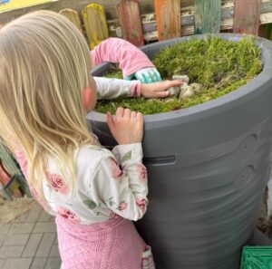 Im März starteten die Kinder der „Kleinen Strolche“ das Projekt „die Rote Mauerbiene“. Sie lernten durch verschiedene thematische Angebote den Lebenszyklus, das Aussehen und das Verhalten der „Roten Mauerbiene“ kennen. Gemeinsam mit den Kindern wurde eine bienenfreundliche Umgebung geschaffen. Danach konnten wir endlich unseren Nistkästen mit den Kokons der Mauerbiene befüllen. Nach einigen Tagen war es soweit – die ersten Bienen schlüpften und machten sich auf den Weg, Nahrung zu suchen. Durch eine durchsichtige Abdeckung im Nistkasten können die Kinder die „Roten Mauerbienen“ in den verschiedenen Lebenslagen weiterhin beobachten.