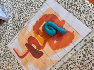 Unser diesjähriger Tag der kleinen Forscher stand unter dem Motto „Klänge und Geräusche“. Gemeinsam forschten wir, ob unsere Knochen Schallwellen weiterleiten. Bei einem Geräuschmemory fanden wir die gleichen Töne heraus. Wir bastelten ein Tamburin mit vielen Glöckchen, eine Rassel mit Nudeln oder Chiasamen. Außerdem gingen wir der Frage nach, ob wir Töne mit einem Trichter besser hören und ob wir Töne sichtbar machen können – dabei ließen wir Körner tanzen, wenn neben ihnen eine Trommel schlägt. Zum Abschluss entspannten wir uns auf der Decke zum Ton der Klangschale.